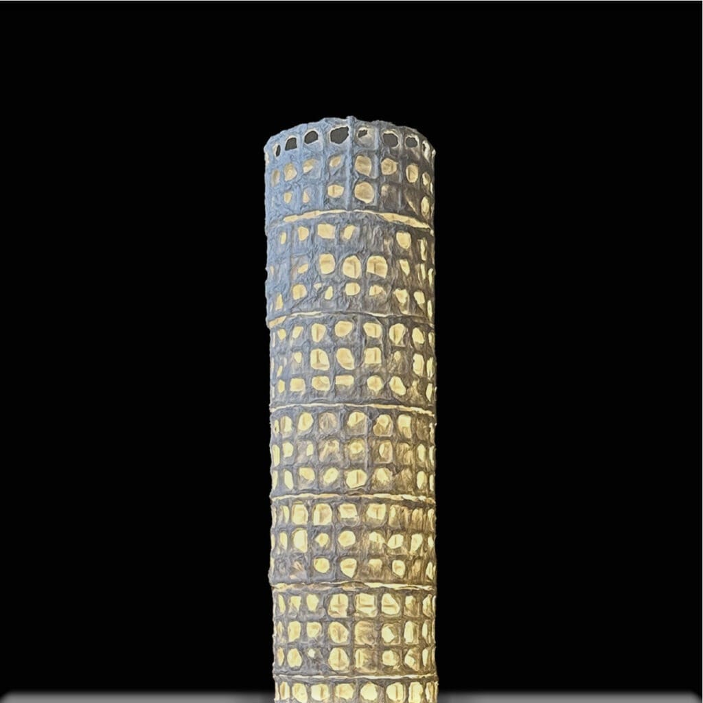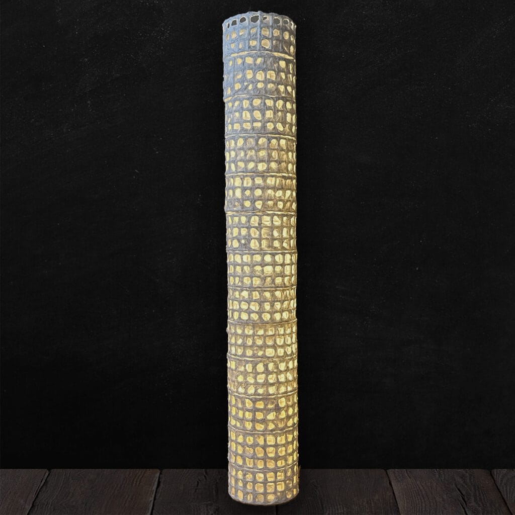 円筒形の端正なフォルムに、和紙の格子を規則正しく重ねることで、夜空に散る星々のような
