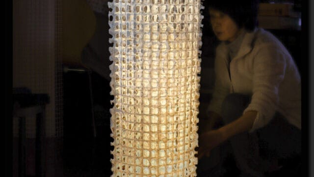 和紙の繊維が生む陰影と、骨の光を宿したフロアライトです。