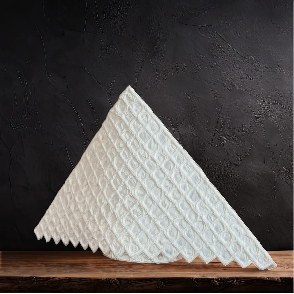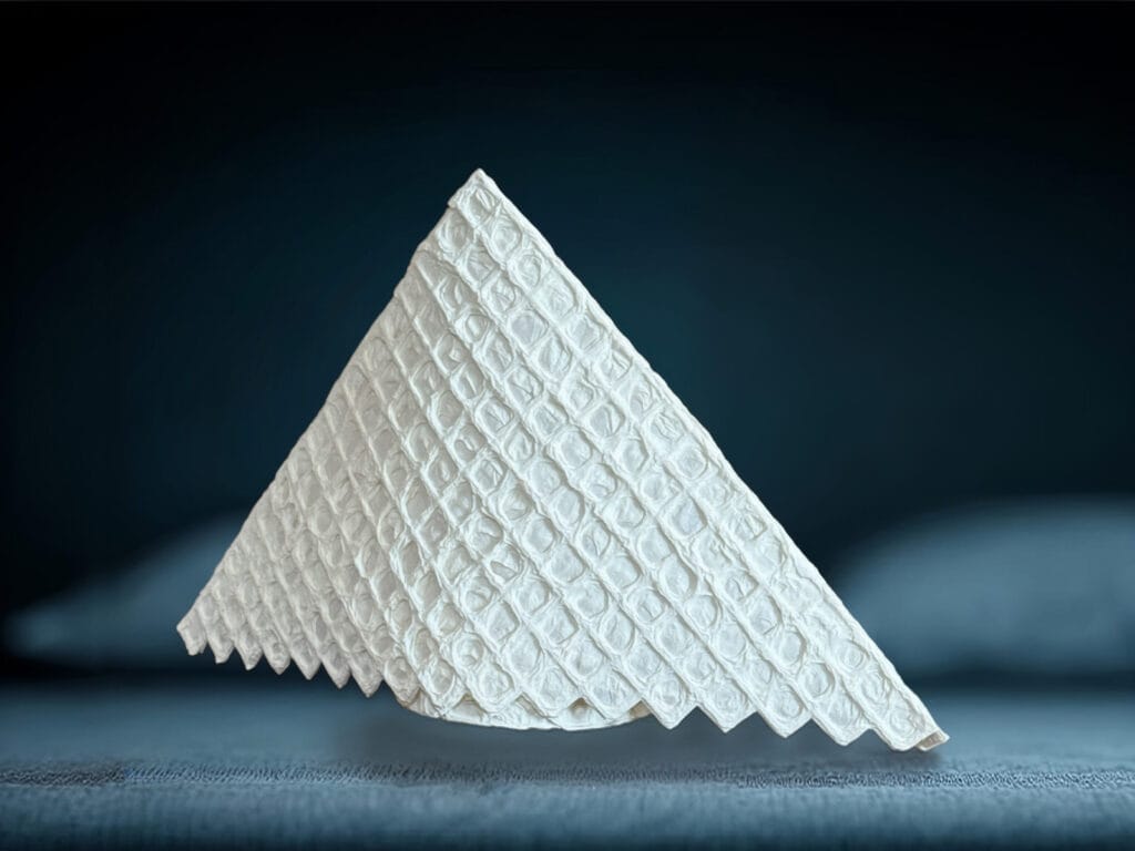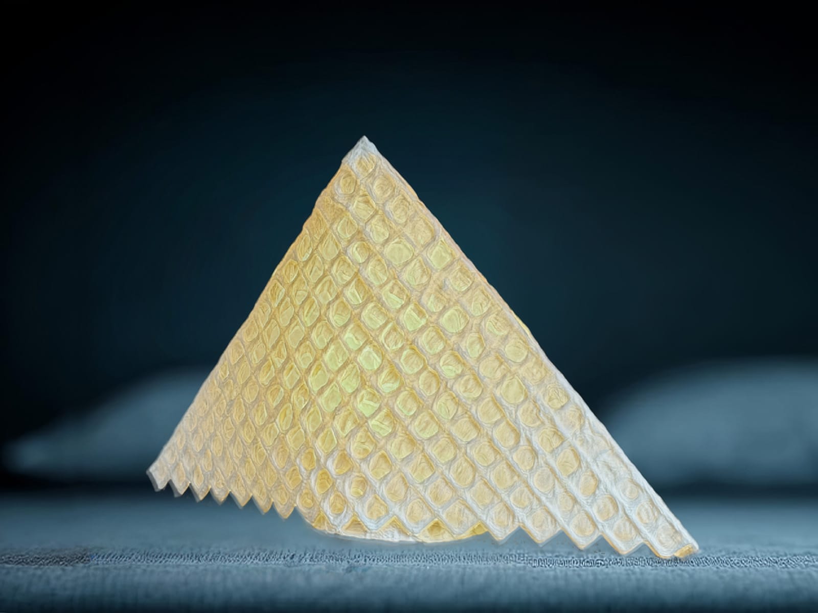 三角フォルムのリズムと、和紙格子のテクスチャが生む陰影。
