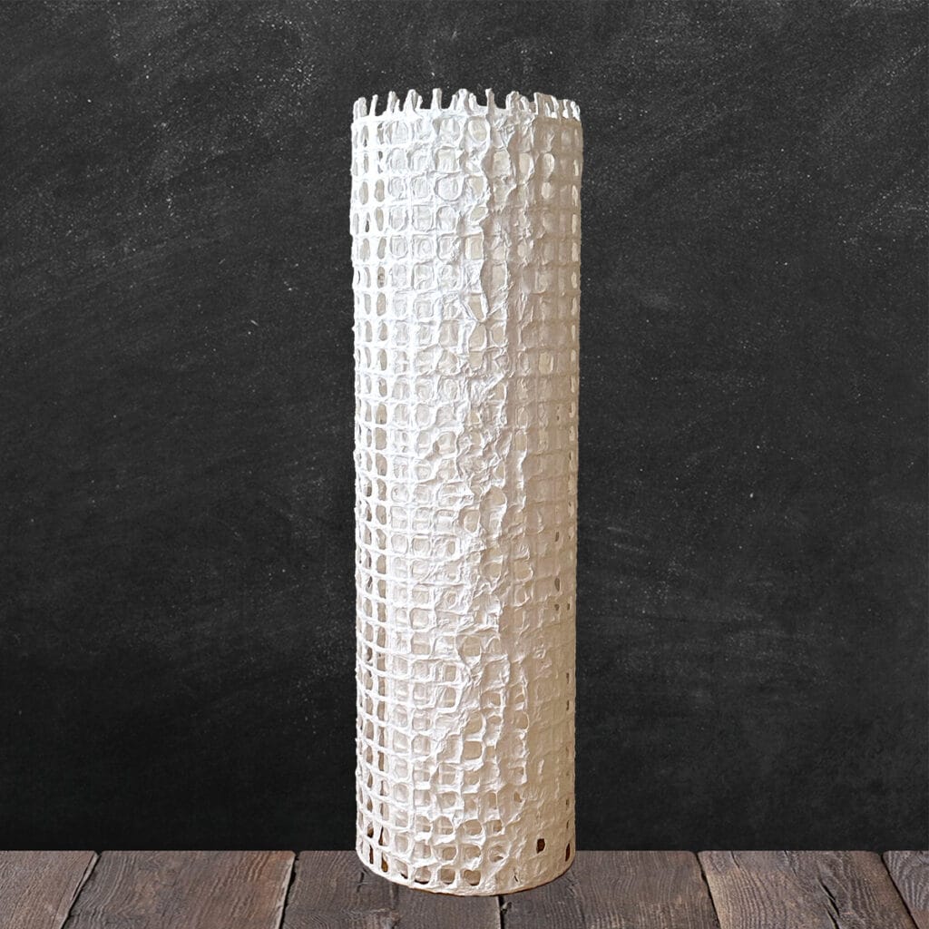 灯りが入るとその凹凸にやわらかな光がたまり、まるで夕陽に照らされた城郭のような温もりを宿します。