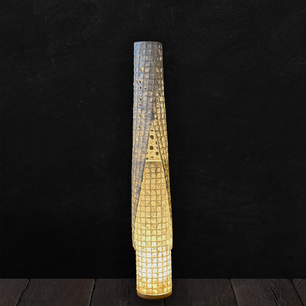 和紙の繊維が生む陰影と、骨の光を宿したフロアライトです。
