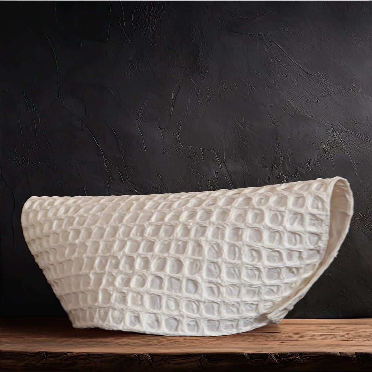 柔らかな曲面に細かな格子が連なるフォルムは、遠い昔から受け継がれる器の記憶を思わせます。